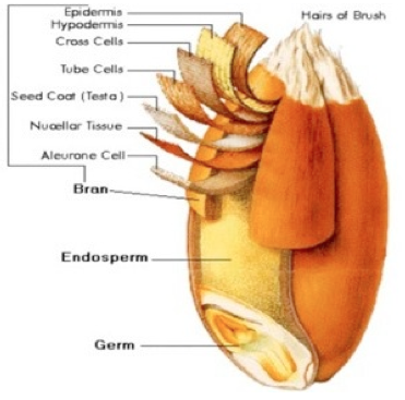 The seed wall, which has a large amount of relatively more difficult to digest polysaccharides, is made of several layers; The aleuron layer, which is also rich in proteins and vitamins, separates the endosperm from the adjoining layers.